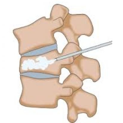 A vertebroplastia consiste em injetar cimento ósseo diretamente em vértebras com fraturas provocadas pela osteoporose, podendo também ser usada em lesões relacionadas a certos tipos de tumores.